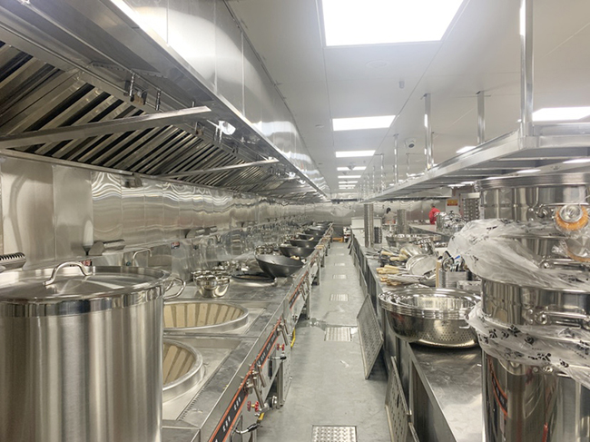 最后,酒店通道设计:通道是连接各工作间与餐厅、人流物流流通的必要设施。减少通道数量、缩短通道长度、截弯取直、并用通道,可以提高空间的利用率和工作效率,是流程酒店设计中的重点,在酒店食堂设计时要仔细推敲。